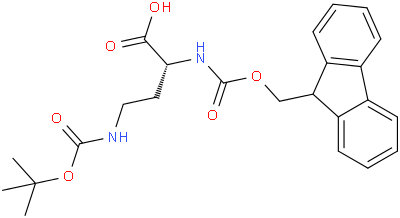N-ALPHA-芴甲氧羰基-N-GAMMA-叔丁氧羰基-D-二氨基丁酸;(R)-4-(BOC-氨基)-2-(FMOC-氨基)丁酸;(R)-2-((((9H-Fluoren-9-yl)methoxy)carbonyl)amino)-4-((tert-butoxycarbonyl)amino)butanoic acid;(2R)-2-(9H-fluoren-9-ylmethoxycarbonylamino)-4-[(2-methylpropan-2-yl)oxycarbonylamino]butanoic acid